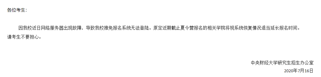 【申请截止延期】中央财经大学推免生报名系统延长报名时间通知