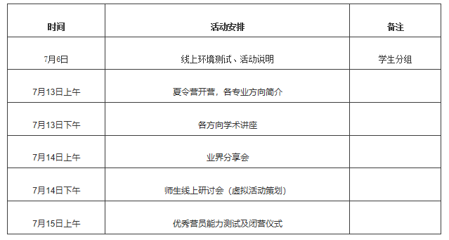注:获得“2020年全国优秀大学生线上研学夏令营”优秀营员资格的学生如获得所在学校2020年推免生资格,并报考我院对应专业方向,将优先作为我院2021年招收的推荐免试研究生。