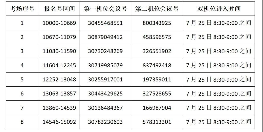 考试时间:2020年7月25日10:45-11:50